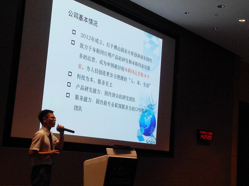 天地行技術(shù)總監(jiān)何芝代表公司參賽,向大家展示了天地行的核心團隊、技術(shù)優(yōu)勢及創(chuàng)新能力、產(chǎn)品功能、車聯(lián)網(wǎng)運營服務系統(tǒng)、未來的發(fā)展規(guī)劃等,獲得大賽評委們的一致認可。