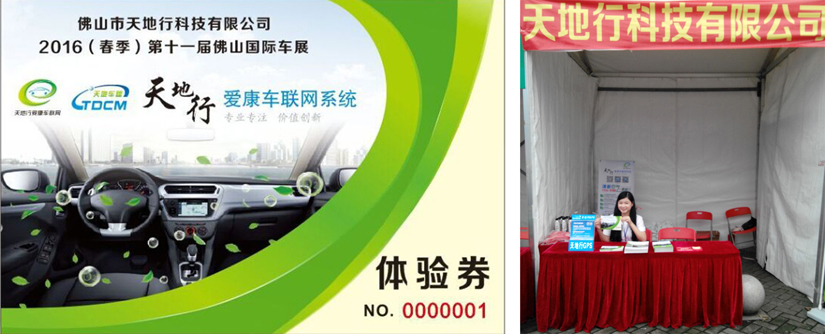 在本次展會中天地行送出了500張 ”天地行愛康車聯(lián)網(wǎng)系統(tǒng)" 體驗券。車主憑體驗券到天地行佛山營業(yè)處安裝產(chǎn)品,可免安裝費,試用3個月。同時也希望借此機會讓更多的車主重視車內(nèi)空氣質(zhì)量,關(guān)注駕乘人員的身體健康!