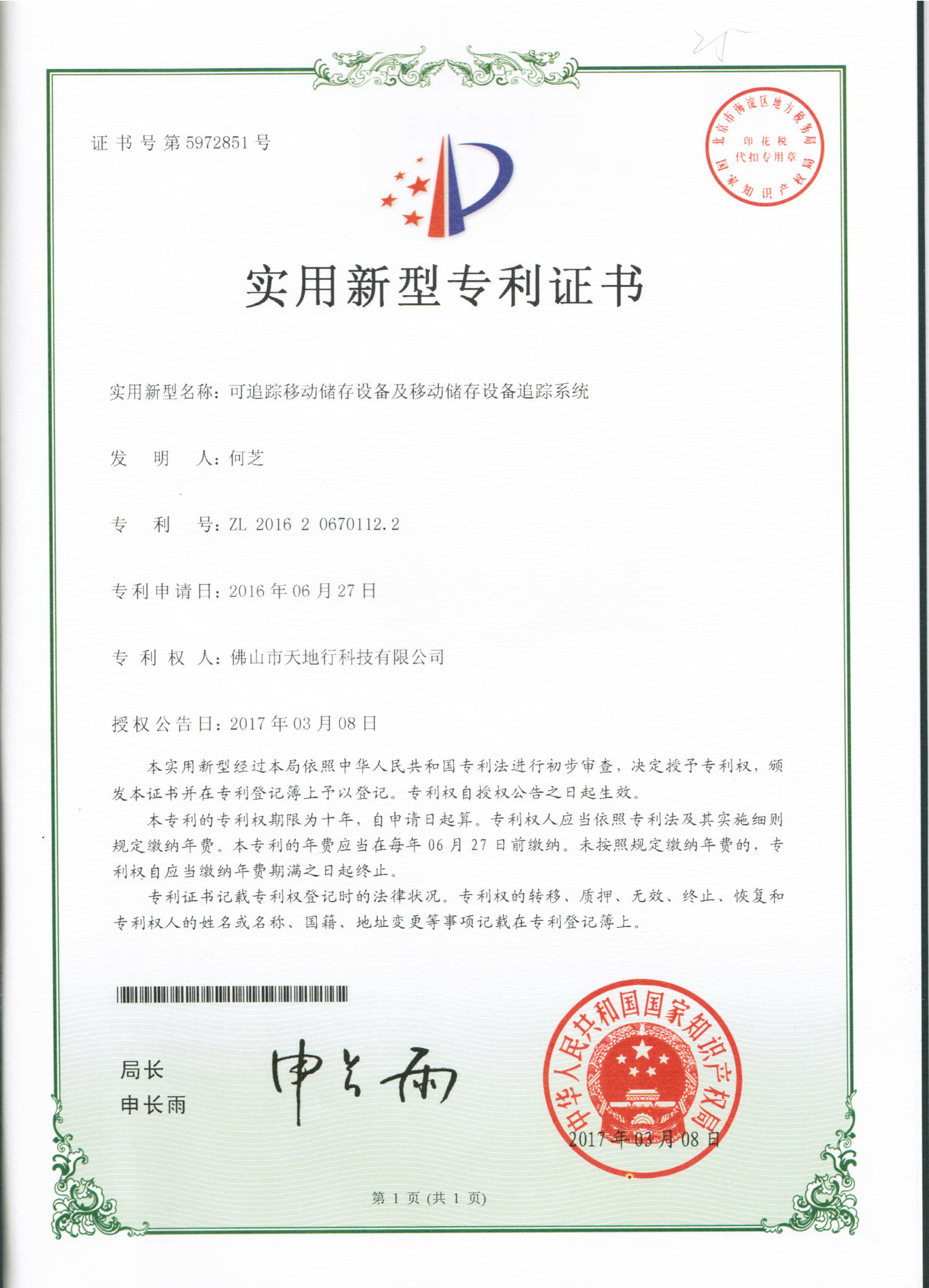 實用新型專利證書(追蹤)