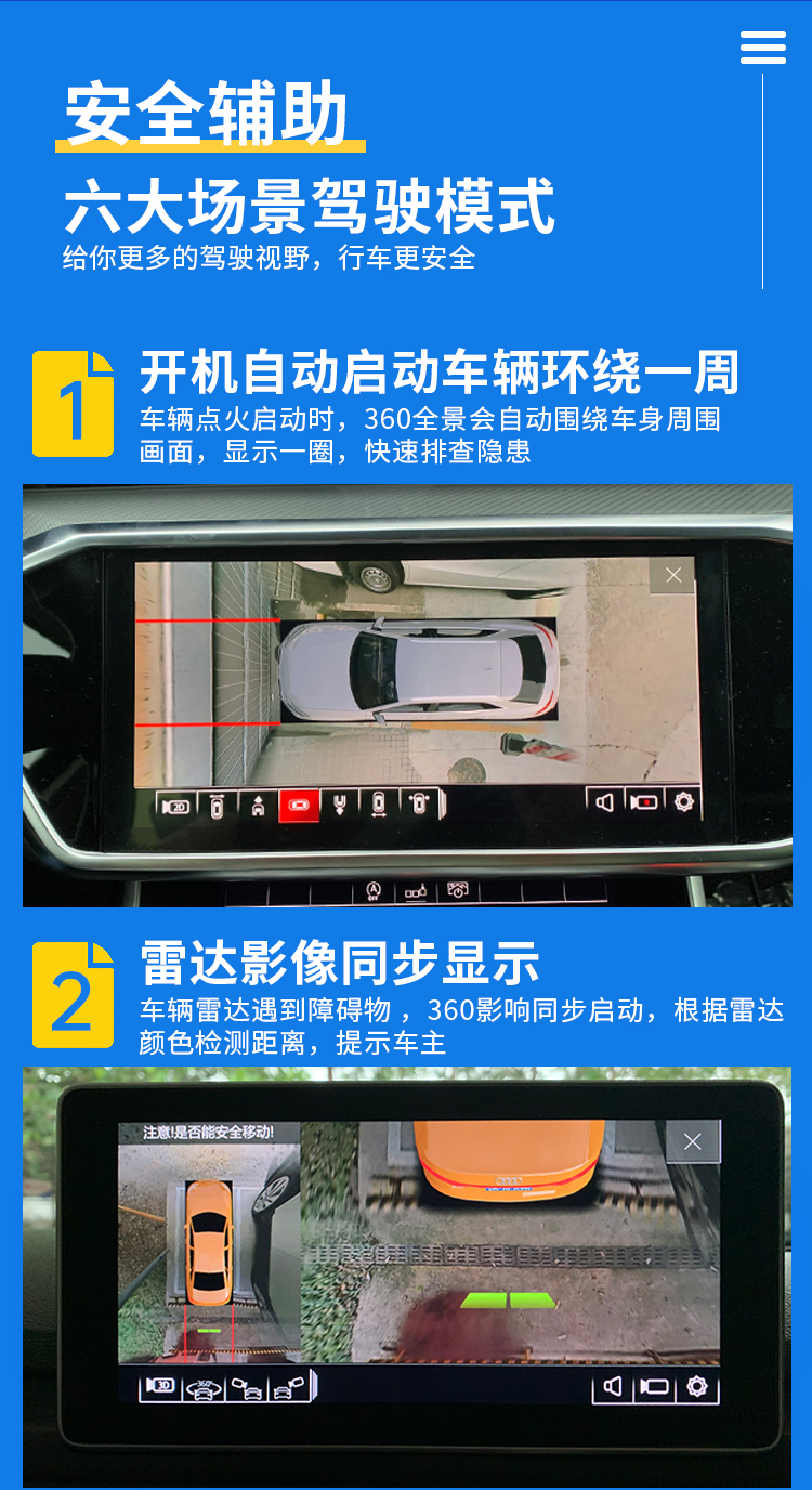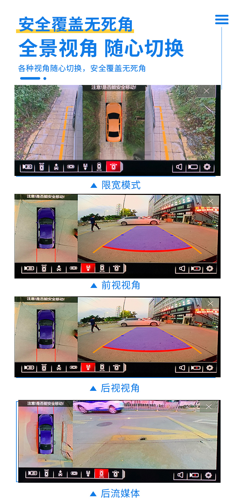 四路行車(chē)記錄/ 盲區(qū)輔助/ 精準(zhǔn)軌跡/ 超清夜視